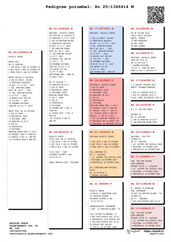Nepot din RO 18-1017970 – Locul 1 Madona National, 10341 porumbei, 1040 km – 2019