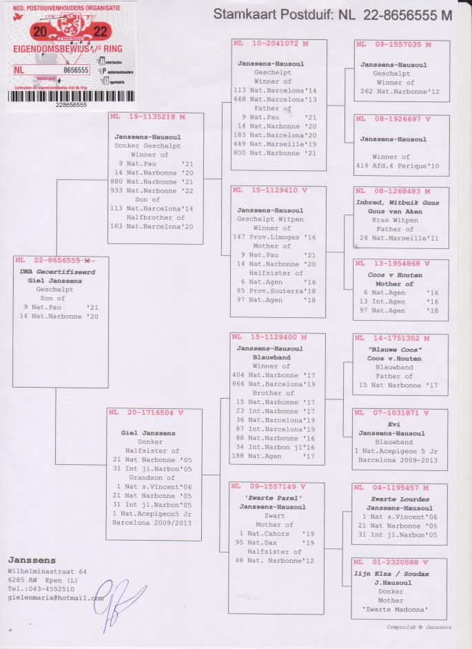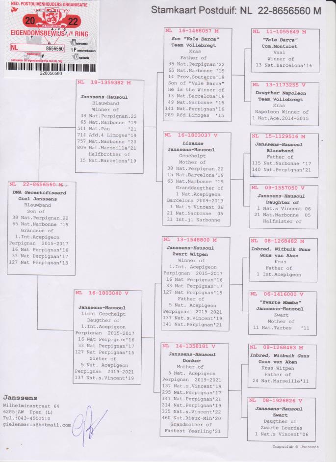 Nepoat Zwart Witpen 1 Int Acepigeon Perpignan 15-17 16 Nat Perpignan 16 33 Nat Perpignan 17 127 Nat Perpignan 15 Zwart Witpen este tata la: 5 Nat Acepigeon Perpignan 19-21