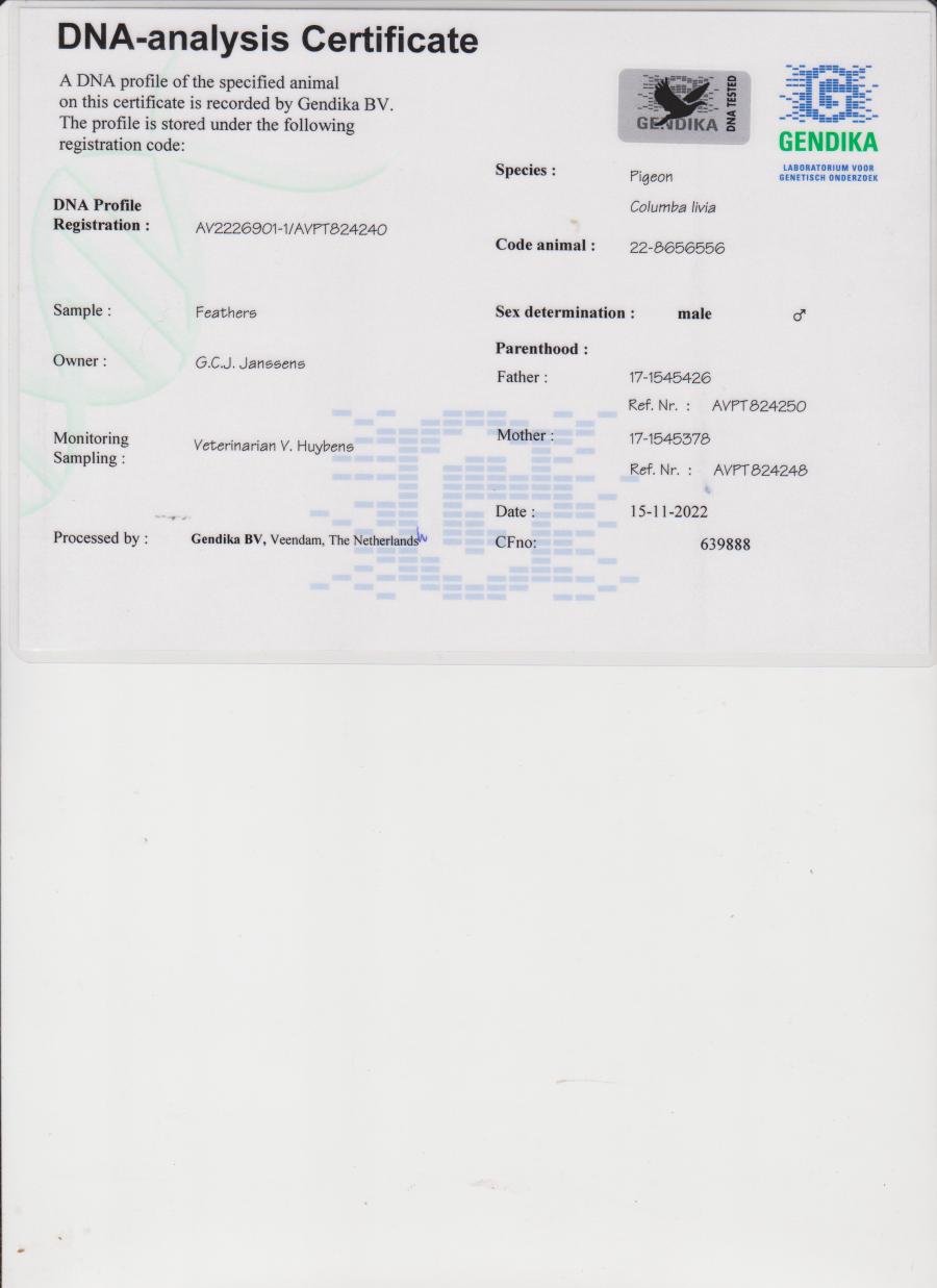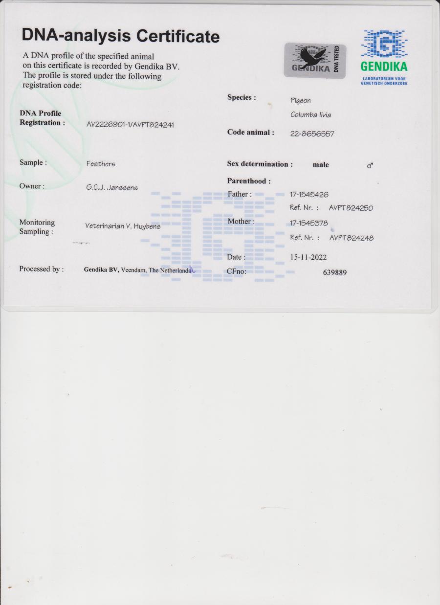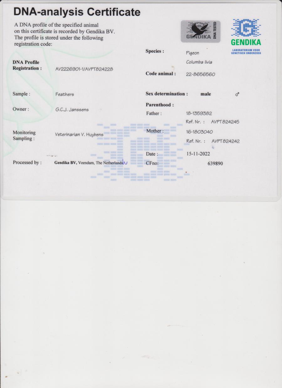 Porumbel insotit de test ADN! oferta curenta: Alin90 |