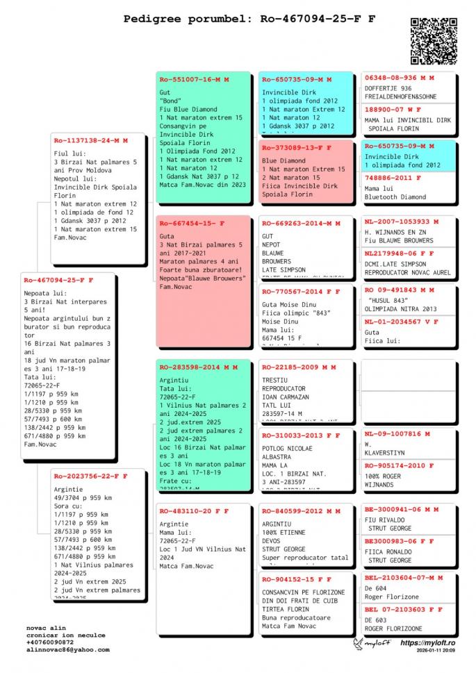 Fiul lui RO 22-2023770 F 2 Jud. VN Gold Maraton 2023 4 Jud. VN AS Maraton 2025 5 Jud. VN 4 Etape Maraton 55 Nat. AS Maraton 2025 Zburata la un an 3 etrape de 770 de km si una de 1040 km