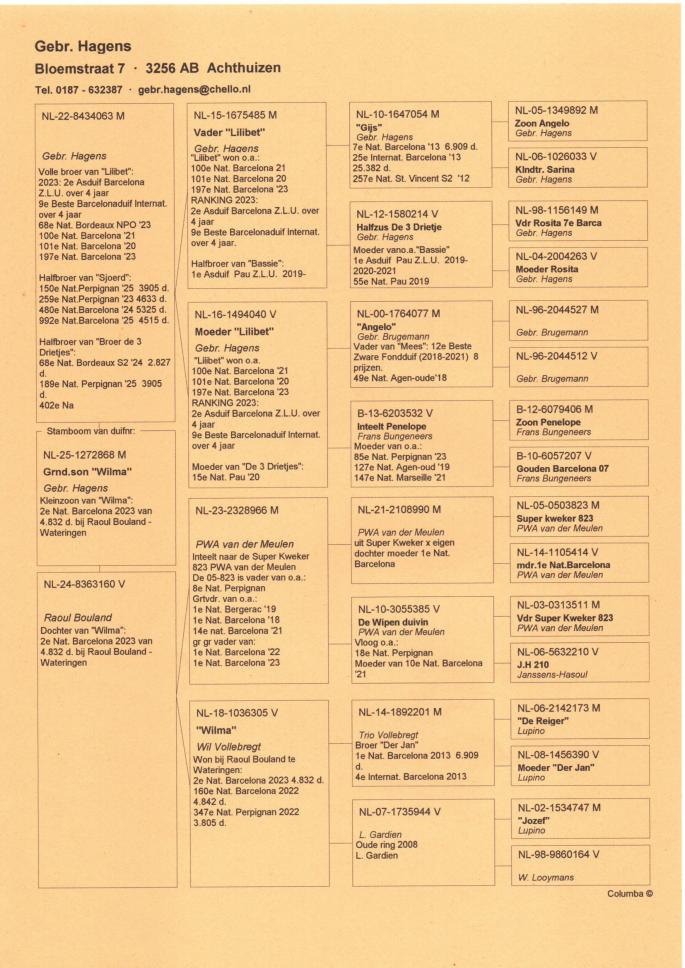 Porumbelul este nepot din Angelo. Tatal este fiu direct din Angelo.