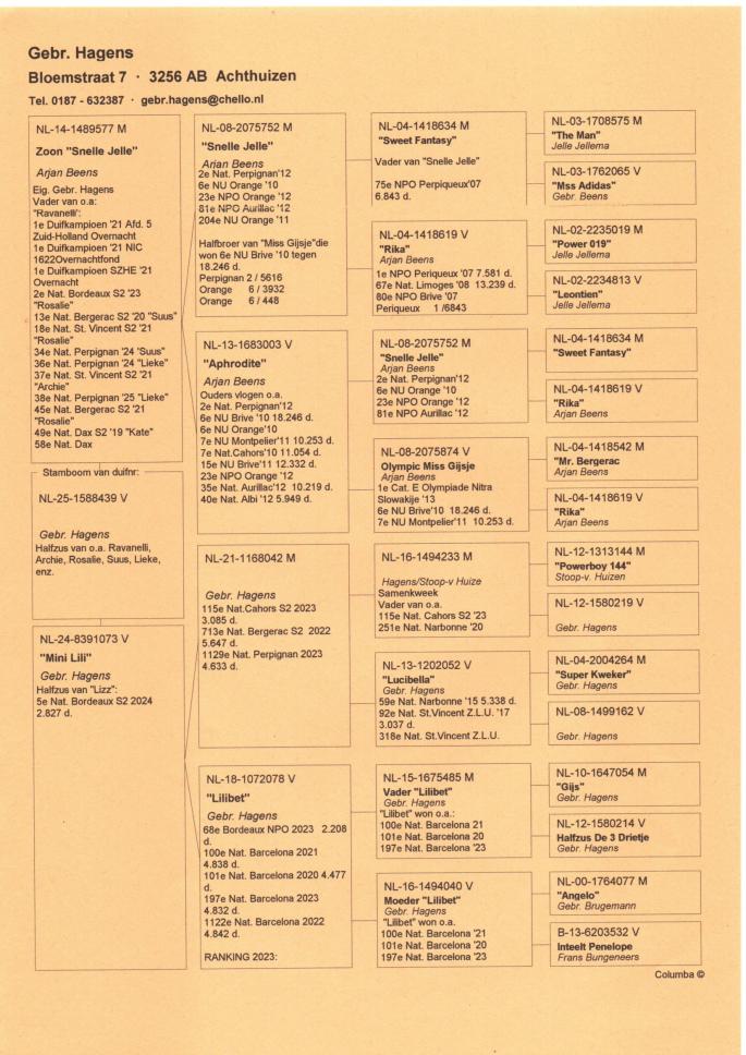 Mama este fiica din Bram x Olivia si nepoata din Super Kweekkoppel.