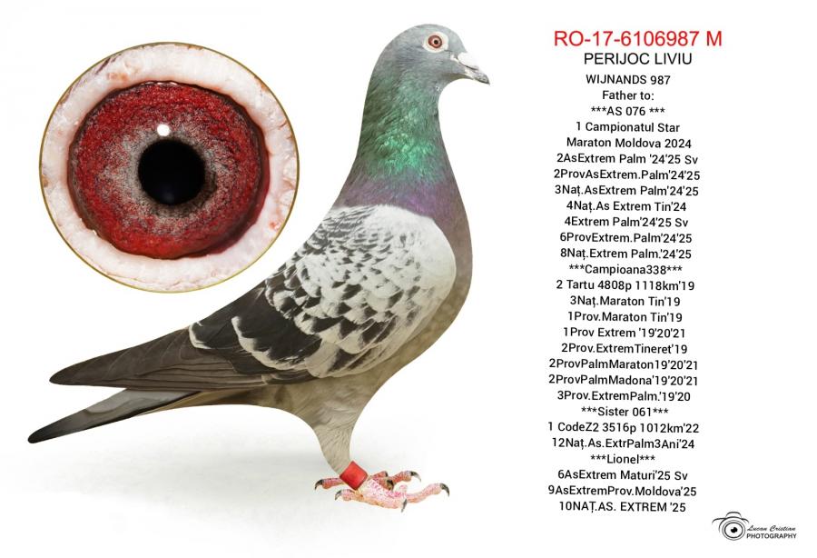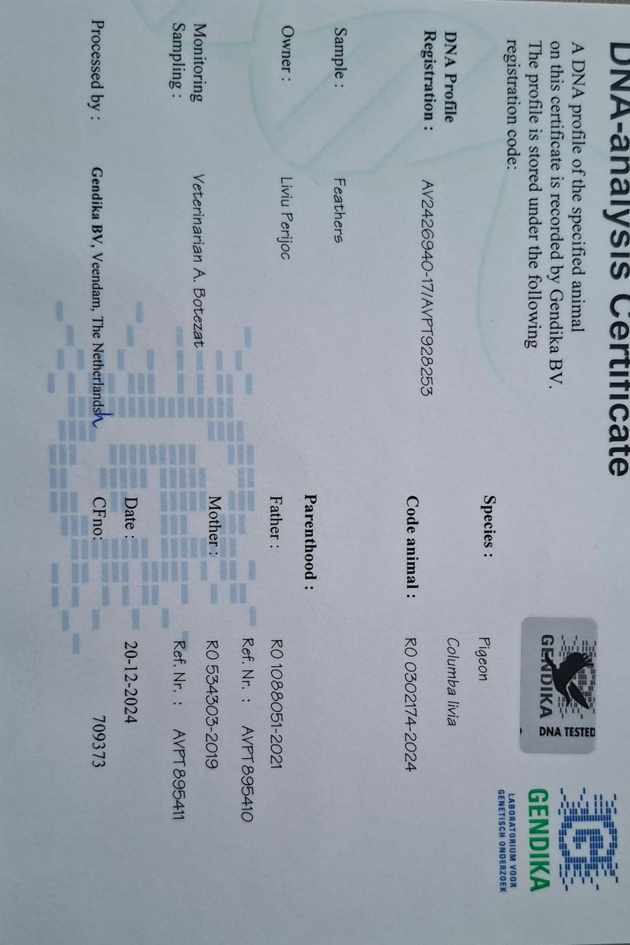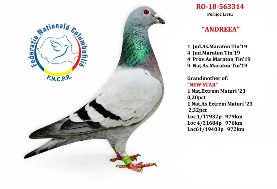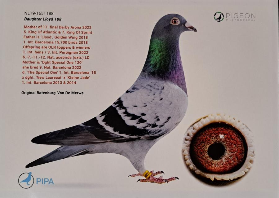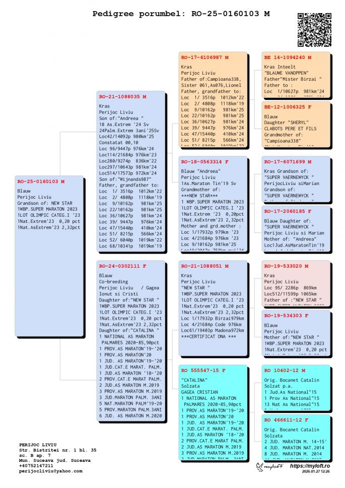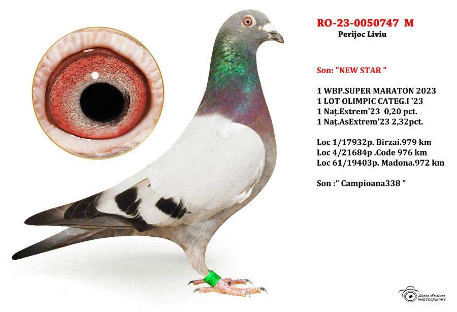 Nepot: New Star 1 World Best Pigeon Super Maraton 2023 1 Nat. Extrem 23 0,20 pct 1 Nat. AS Extrem 23 2,32 pct 1 Lot Olimpic Categ. I 23 Loc 1/17932p Birzai 979km Loc 4/21684p Code 976km Loc 61/19403p Madona 972km Tata: DE 035 fiu Wijnands 987 x Andreea, super zburator Mama: DE 111 fiica New Star x Catalina oferta curenta: Vladjup |
