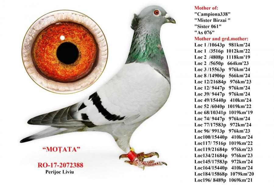 Consangvina: Motata – super reproducatoare Mama pentru: CAMPIOANA 338 3 Nat. Maraton Tineret 19 1 Prov. Maraton Tineret 19 1 Prov. Extrem 19, 20, 21 2 Prov. Extrem Tineret 19 2 Prov. Palm. Maraton 19, 20, 21 2 Prov. Palm. Madona 19, 20, 21 3 Prov. Extrem Palm. 19, 20