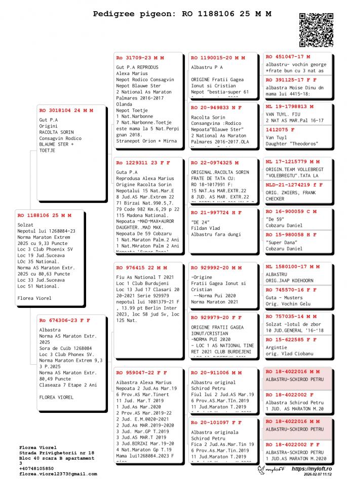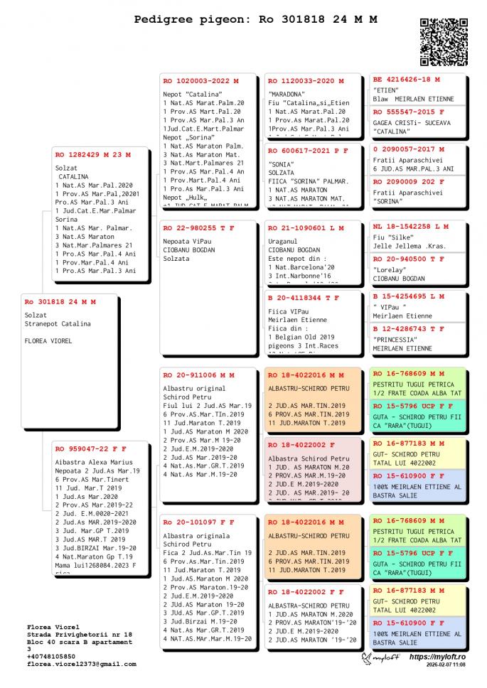 Anul 2025 aduce mai multe rezultate importante, aparute in Catalogul National, atat cu porumbei tineri, cat si cu maturi, confirmand valoarea lotului detinut: