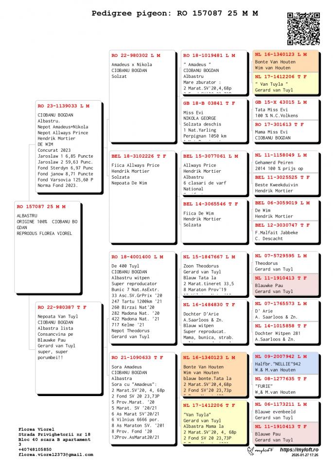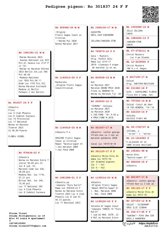 Anul 2025 aduce mai multe rezultate importante, aparute in Catalogul National, atat cu porumbei tineri, cat si cu maturi, confirmand valoarea lotului detinut: