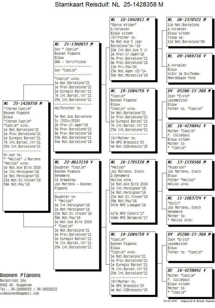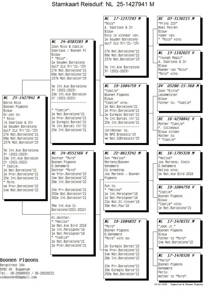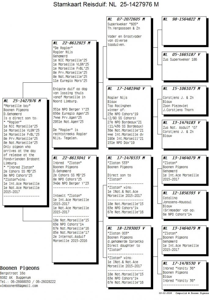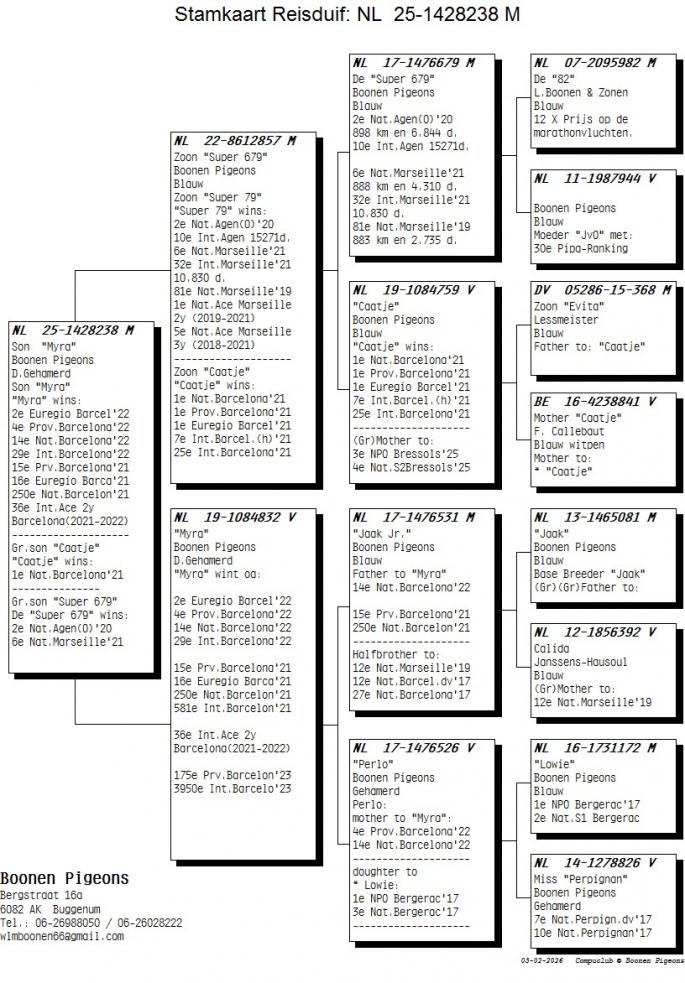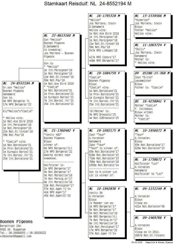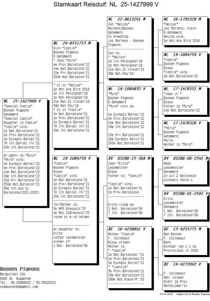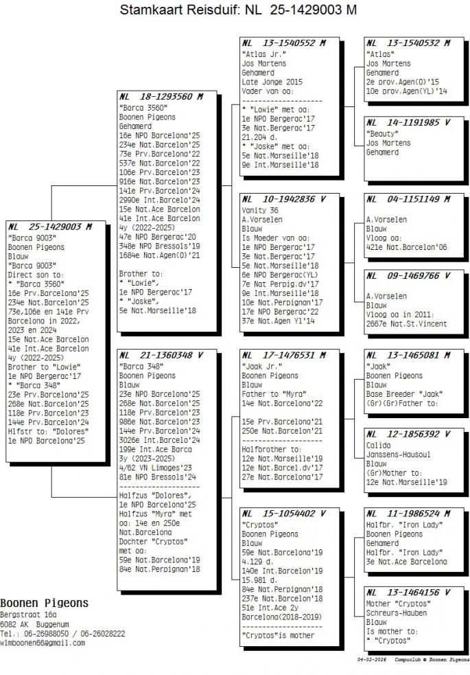NL23-9458046 (100% Boonen Pigeons) linia Jaak si Ganadora