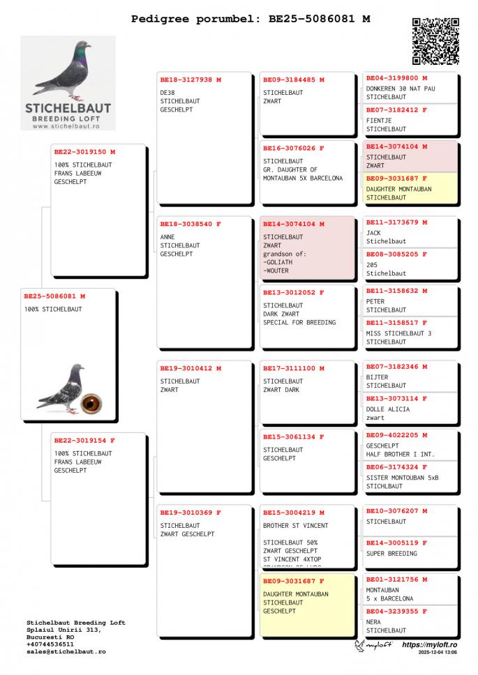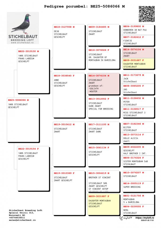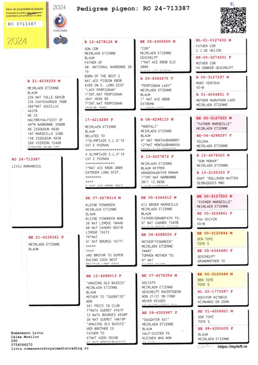 50% Stichelbout 50% Etinne Meirlaen Tata 100% Stichelbaut Linie Mountanban, Dole Alicia, Golden Lady,Bijter Sister Titi, Favorite- super reproducator Mama 100% Etinne Meirlaen fiica: 226 Nat Tulle 6428 p. 235 Chateaurox 708 p. Nepoata Kleine Fenomen: 36 Nat. Limoge 1044 p. 60 Nat Cahors 8651 p. 79 Limoge 19373 p. 91 Bourges 16771 p. oferta curenta: Madalin19 |