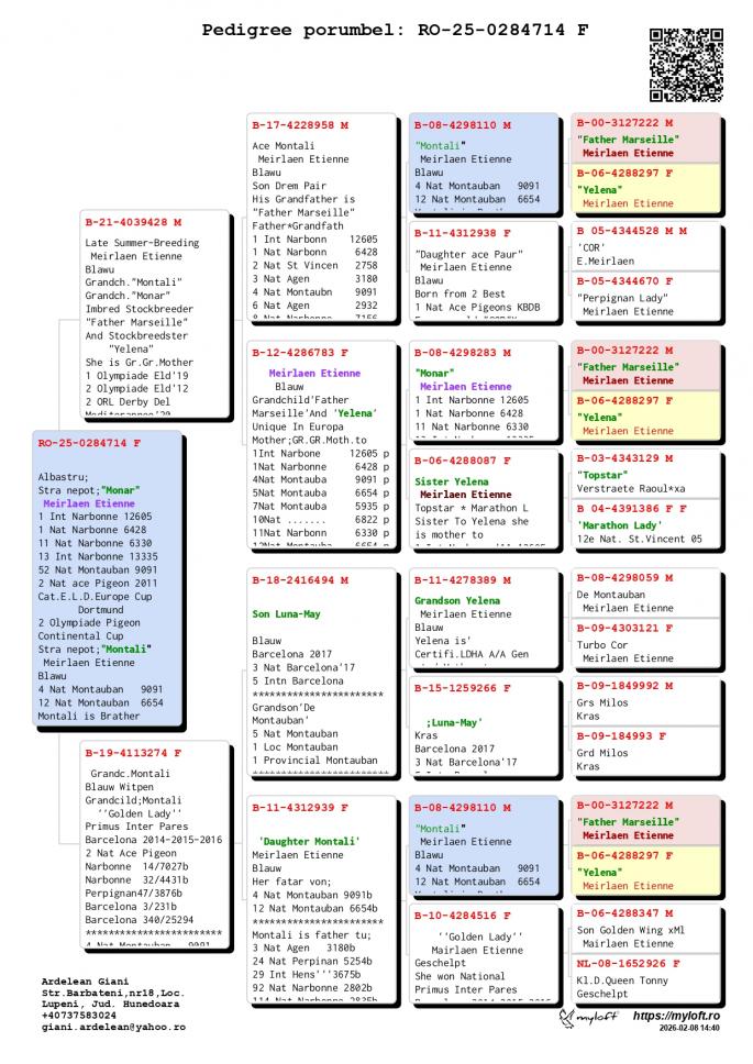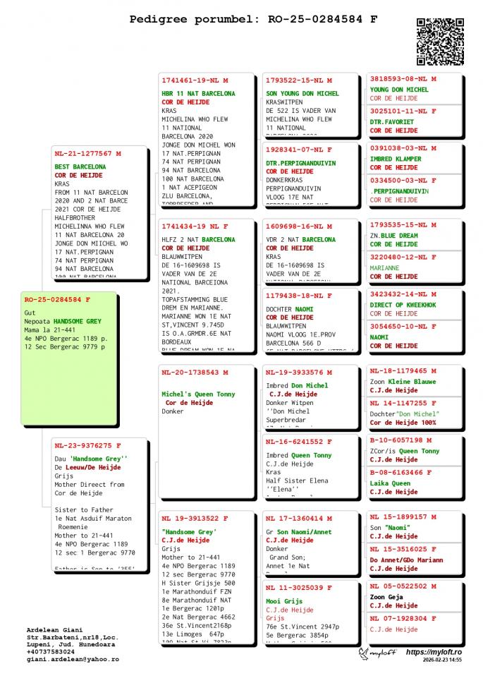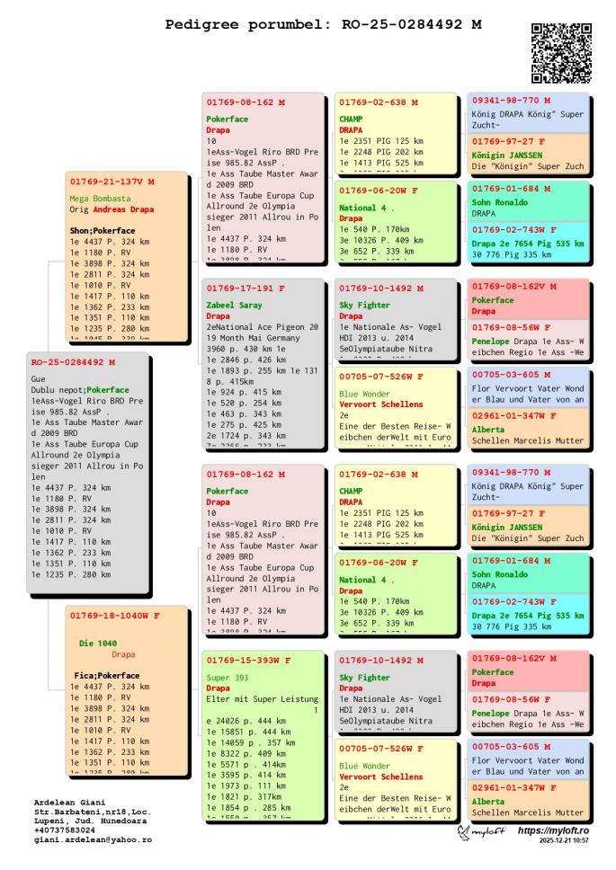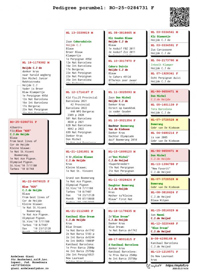 Mama este fiica si nepoata MILAN - Verweij-den Haan Super Reproducator ! 12 Nat. Pau 3351 p. 21 Nat. Agen 4679 p. 55 Int. Agen 9043 p. 13 NPO Cahors 2471 p. 41 Nat. Cahors 7587 p. 10 Nat. Perpignan 92 Nat. Perpignan 6414 p. 96 Nat. Agen 14776 p. Fiica PIP 2 FC Nord Holland 339 p. 12 Nat. Pau `18 - 3551 p. 99 Int. Pau `18 - 11739 p. 36 SNZH Cahors 1342 p. 161 Nat. Cahors 3653 p. oferta curenta: - |