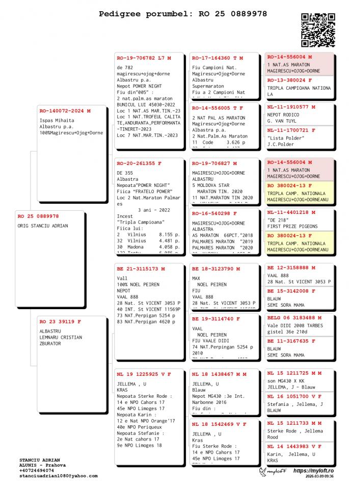 Mama este 100% Verweij-De Haan Nepot MILOS 1 NPO Montauban 1862 p. Tata si bunicul la: 1 Nat. St. Vicent ZLU 2 Nat. Narbonne ZLU 2 Nat. Tarbes 4 Nat. St. Vicent