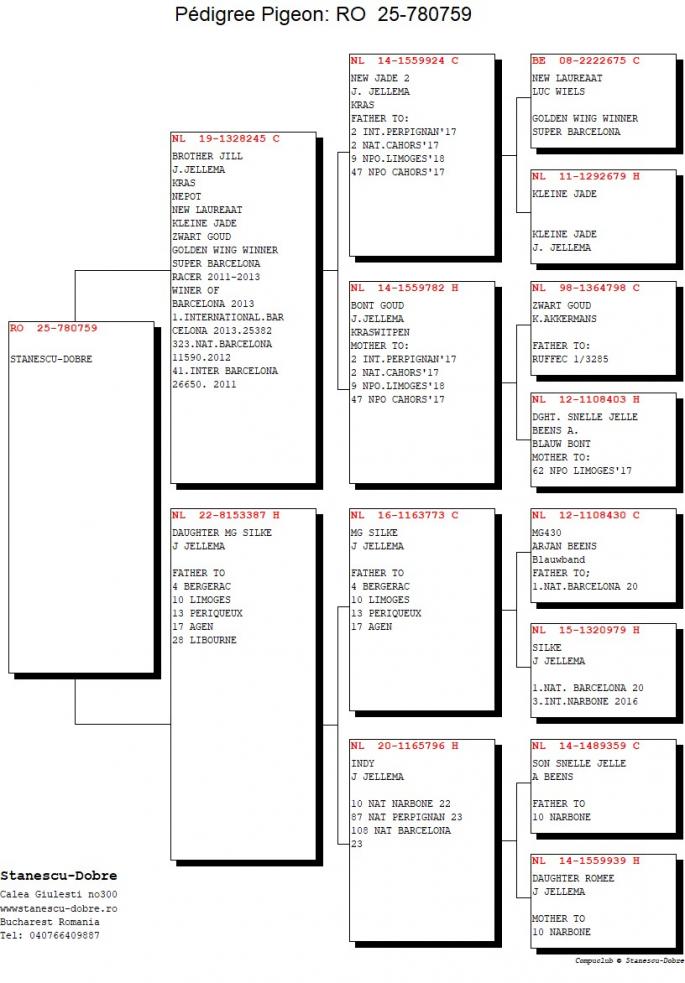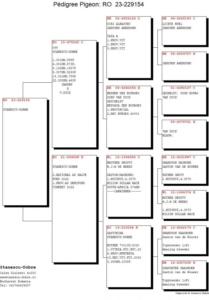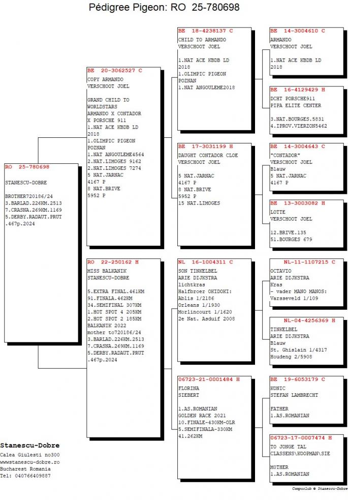 Tata este Semifrate cu 720377-24 1 Skolin, 654 km, 6150 porumbei, 2025 Nepot din Hary 1 Blois – 37.728 p. 1 Chateauroux – 22.340 p. 3 Chateaudun – 21.520 p. 6 Morlincourt – 4.418 p. 16 Strombeek – 4.358 p. 21 Chateauroux – 5.496 p. 23 Epernay – 3.709 p. 30 Nanteuil – 3.249 p.