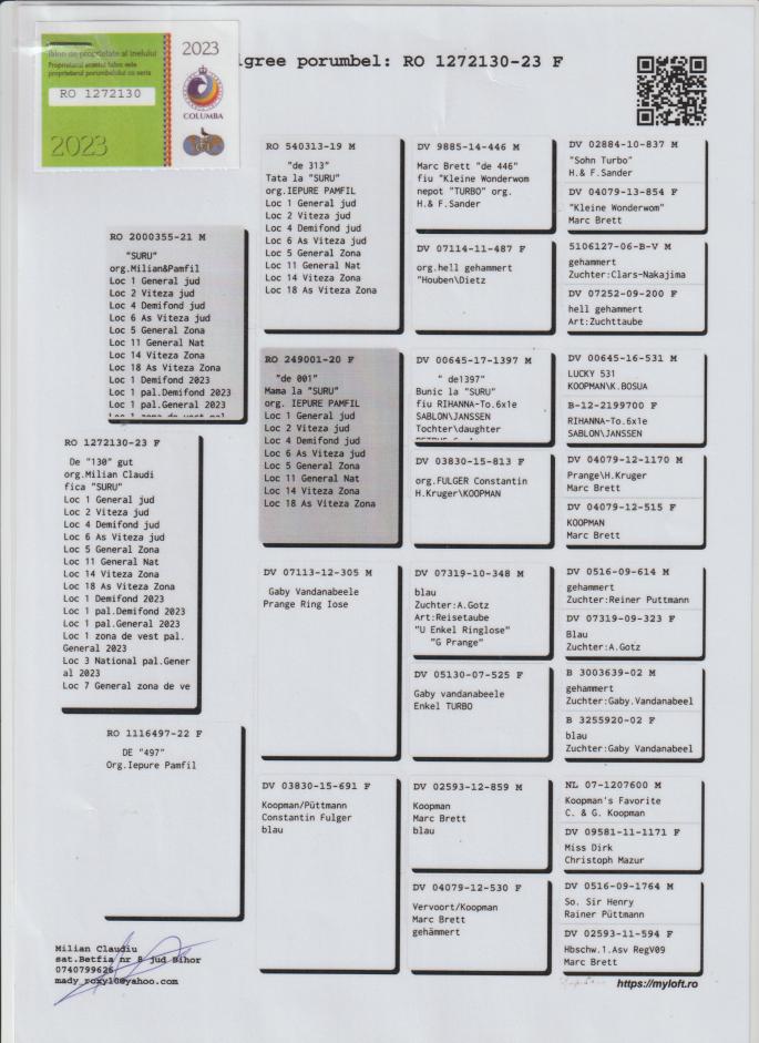 Fiu PEPAN, super reproducator: Loc 3 National Perpignan 3778 porumbei 2018 Loc 3 International Perpignan 12339 porumbei 2018 Loc 392 Nat. St Vicent 2570p 2018 Loc 1333 Int St Vicent 9544p 2018 PEPAN este tata la: 38 Nat Tarbes 2987p 2022 10 Nat Bergerac 9863p 2023 Un porumbel IMPECABIL la mana!