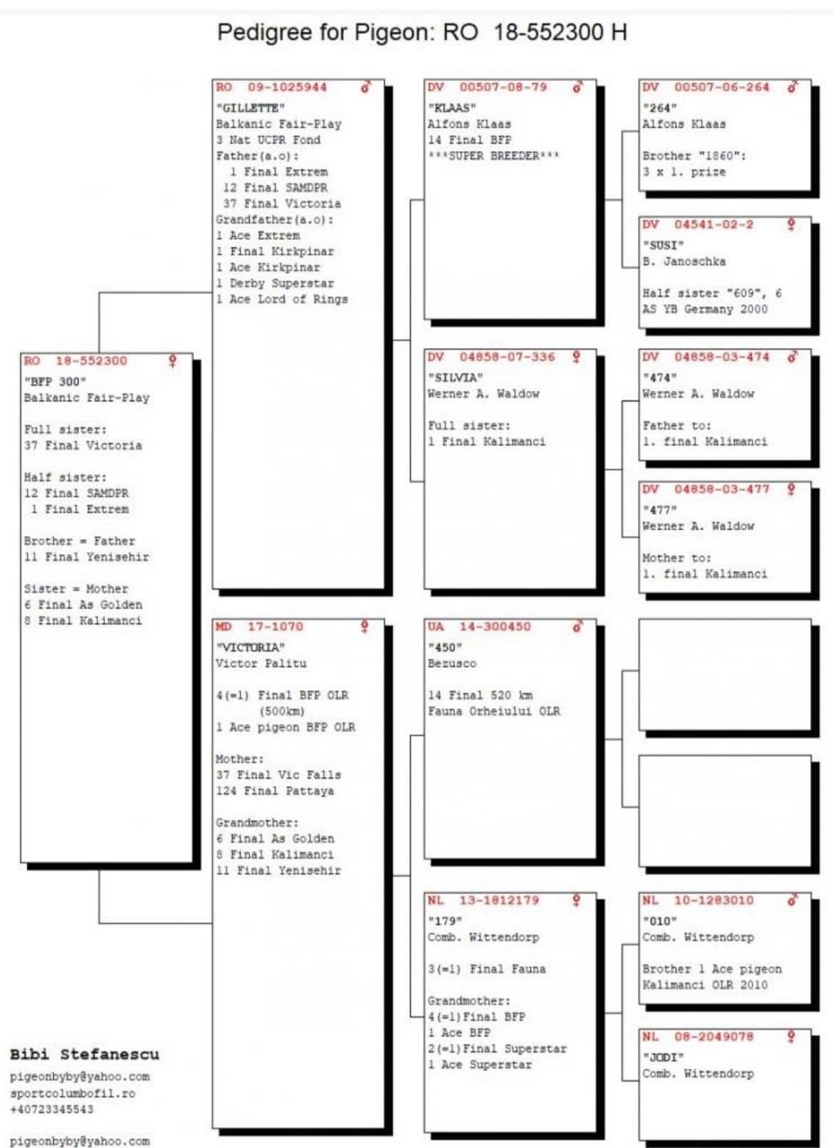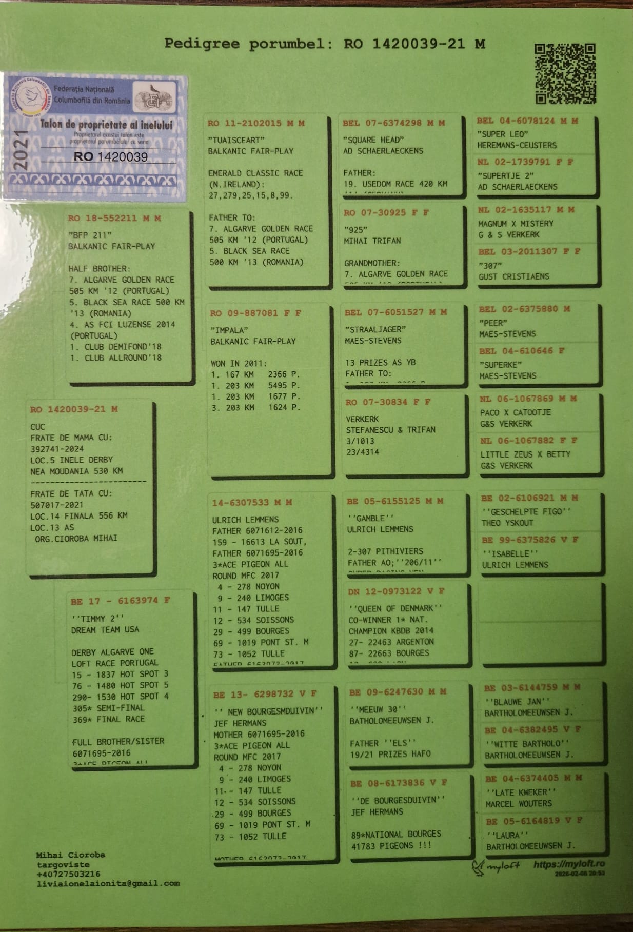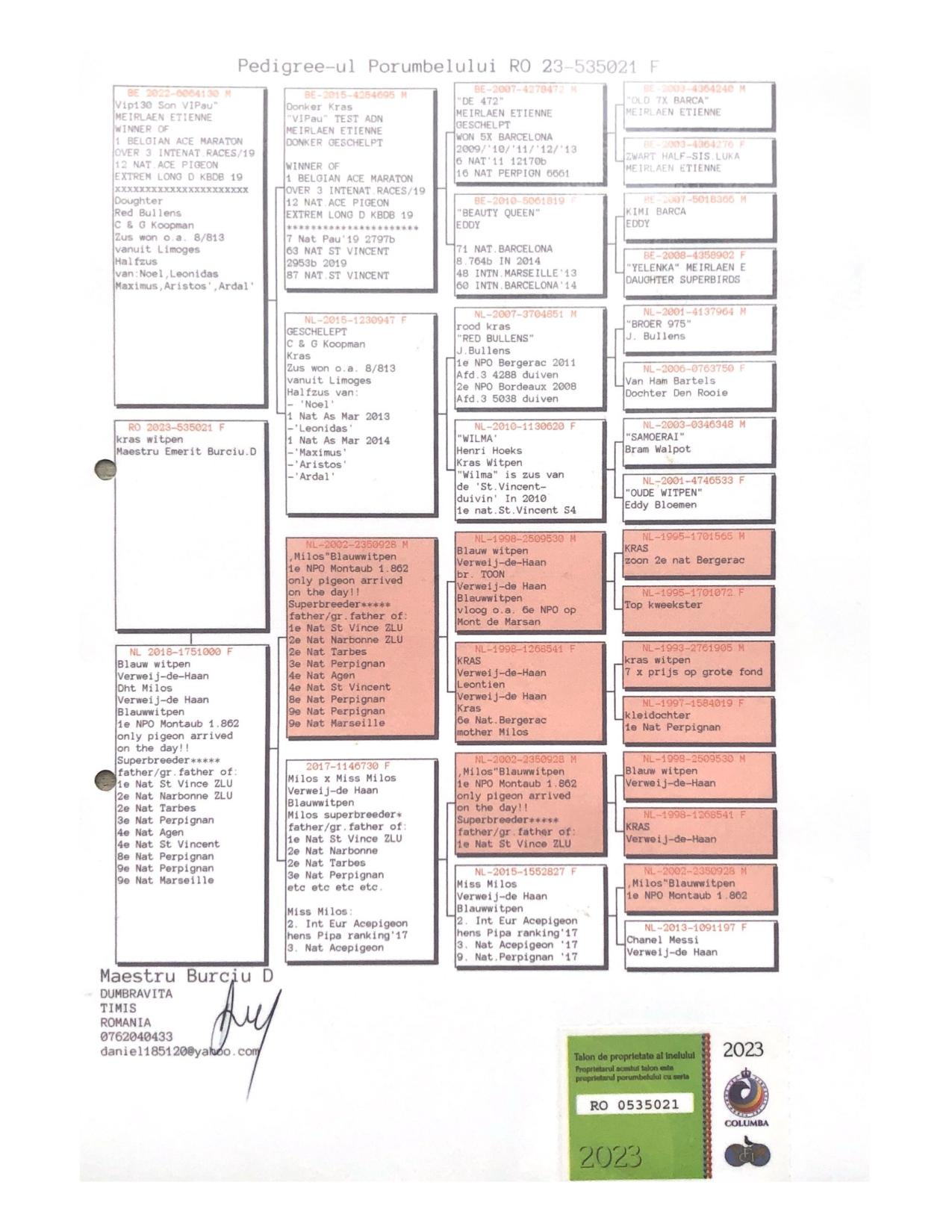 Dublu stranepoata Frenkie 3 Nat. Maraton Internat. races `19 13 Nat. Agen 5214 p. `19 27 Int. Agen 12111 p. 20 Nat. Perpignan `19 71 Int. Perpignan `19 Dublu stranepoata Red Rose 3 Europa Maraton 16 12 Nat Pau 3788 p 14 Int Pau 9908 p 19 Nat Perpig 4027 p 52 Int Perpig 12689p 32 Nat Perpig 6414p Dublu stranepoata Kopie Toon = super reproducator nevandut |