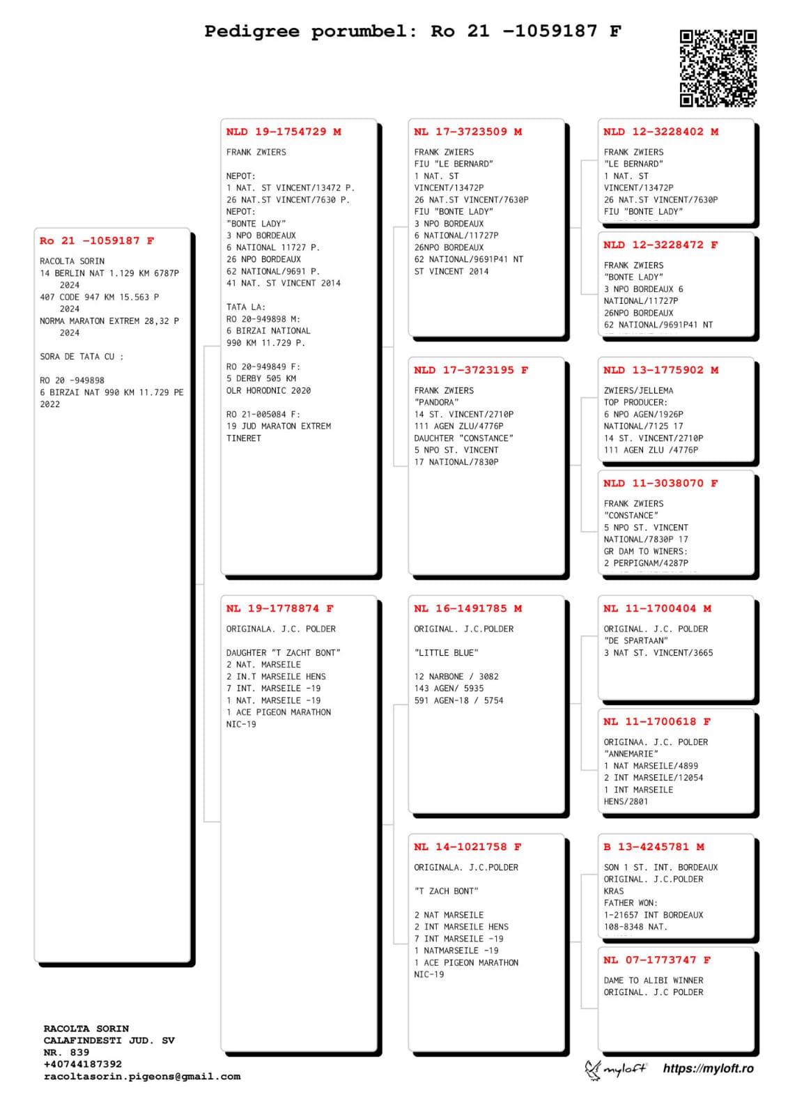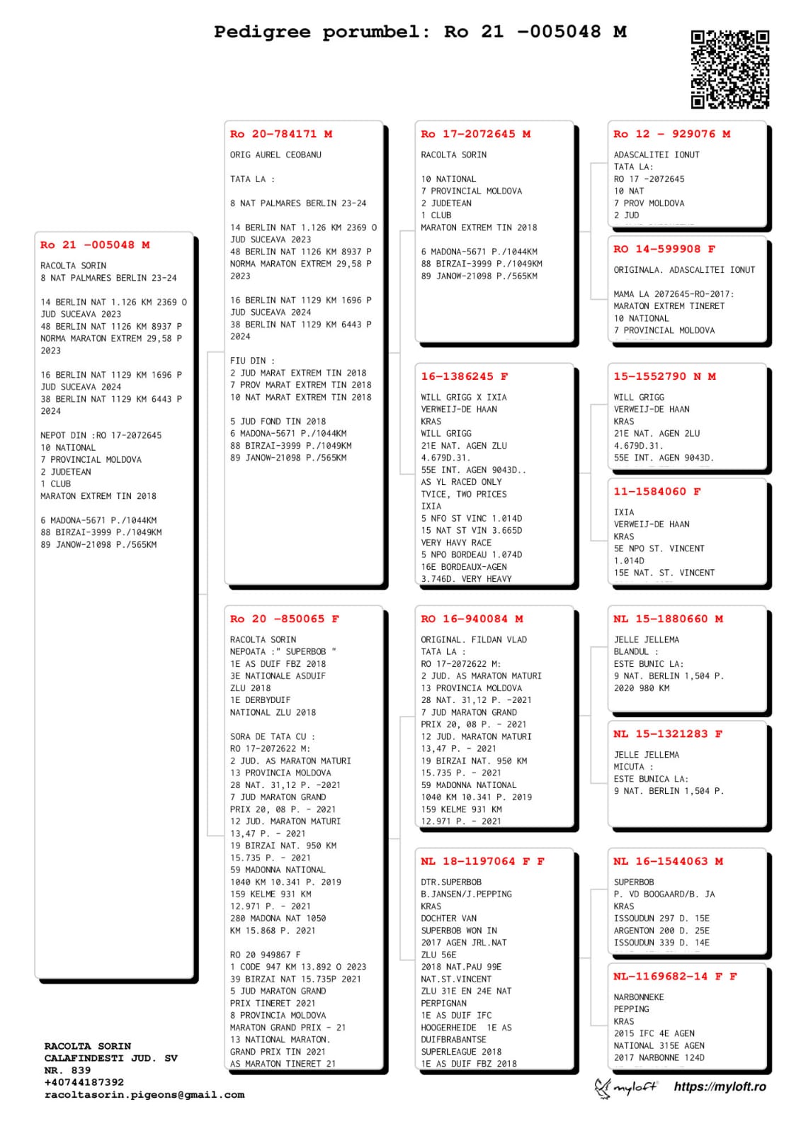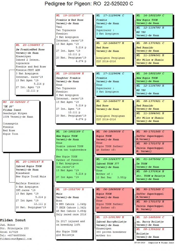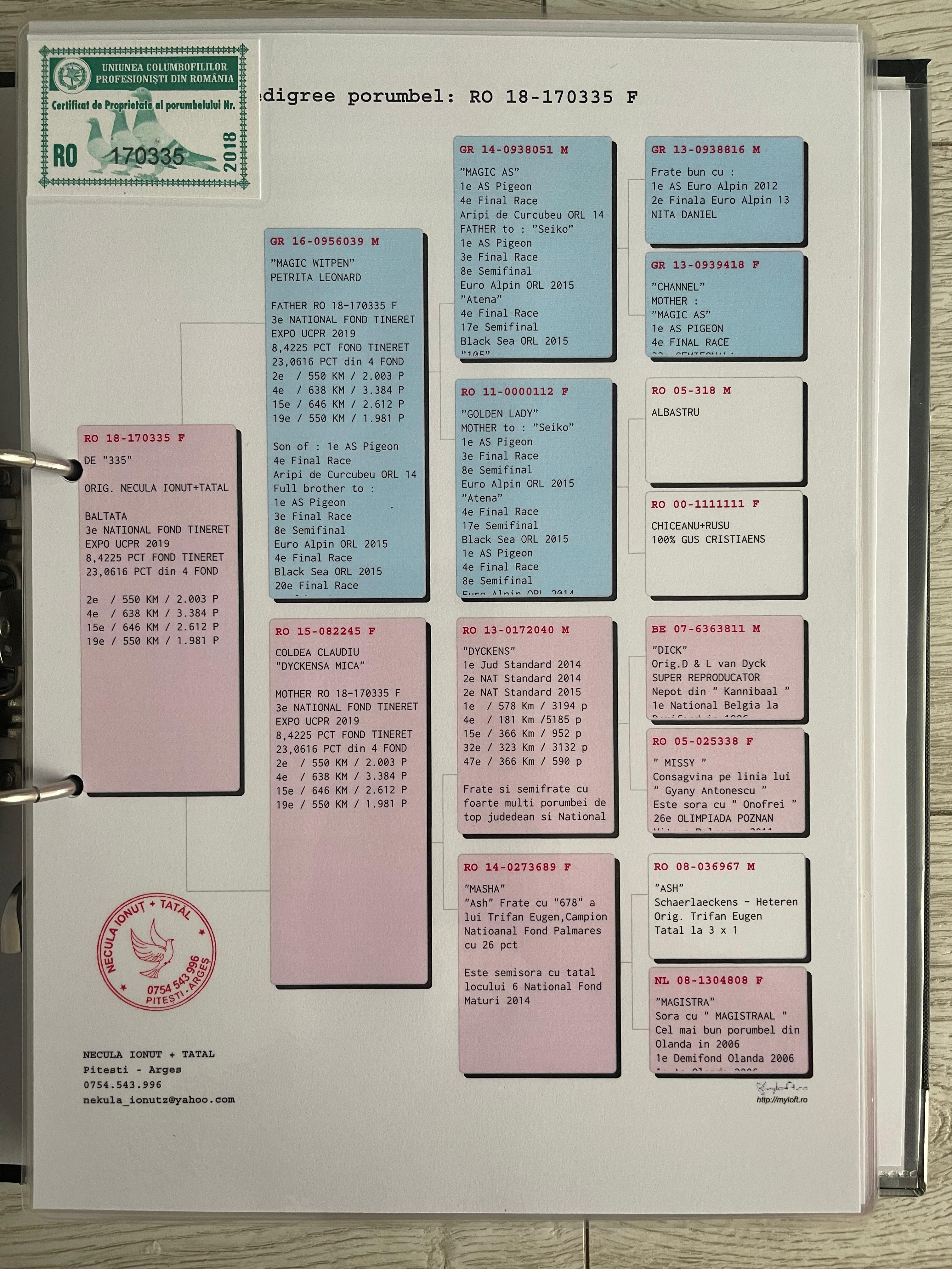 Dublu stranepoata Frenkie 3 Nat. Maraton Internat. races `19 13 Nat. Agen 5214 p. `19 27 Int. Agen 12111 p. 20 Nat. Perpignan `19 71 Int. Perpignan `19 Dublu stranepoata Red Rose 3 Europa Maraton 16 12 Nat Pau 3788 p 14 Int Pau 9908 p 19 Nat Perpig 4027 p 52 Int Perpig 12689p 32 Nat Perpig 6414p Dublu stranepoata Kopie Toon = super reproducator nevandut |