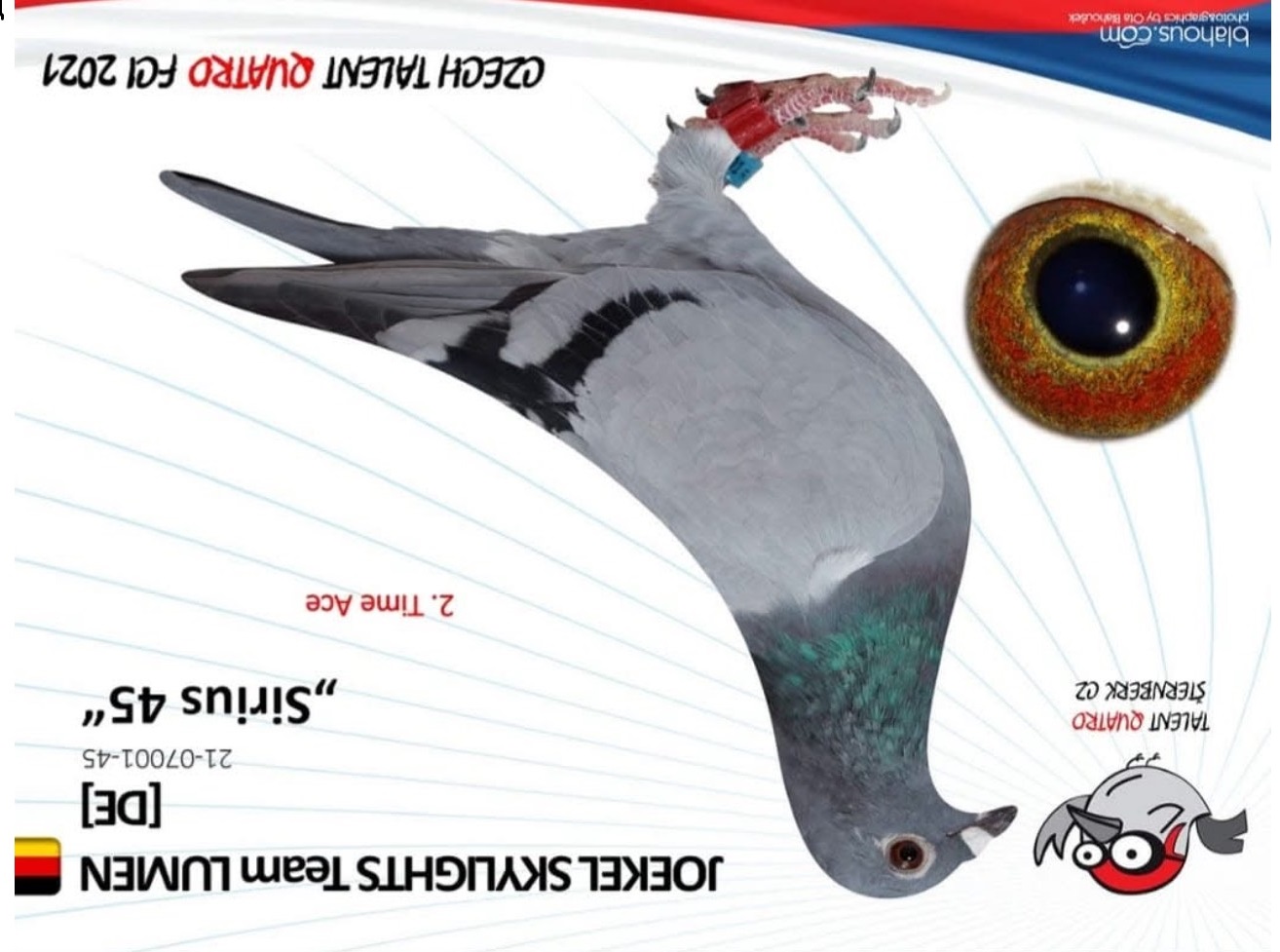 Fiu HERMELIN - CONSANGVINA ROMARIO 4 Final North Sea Race Sylt Island 1 ACE Pigeon