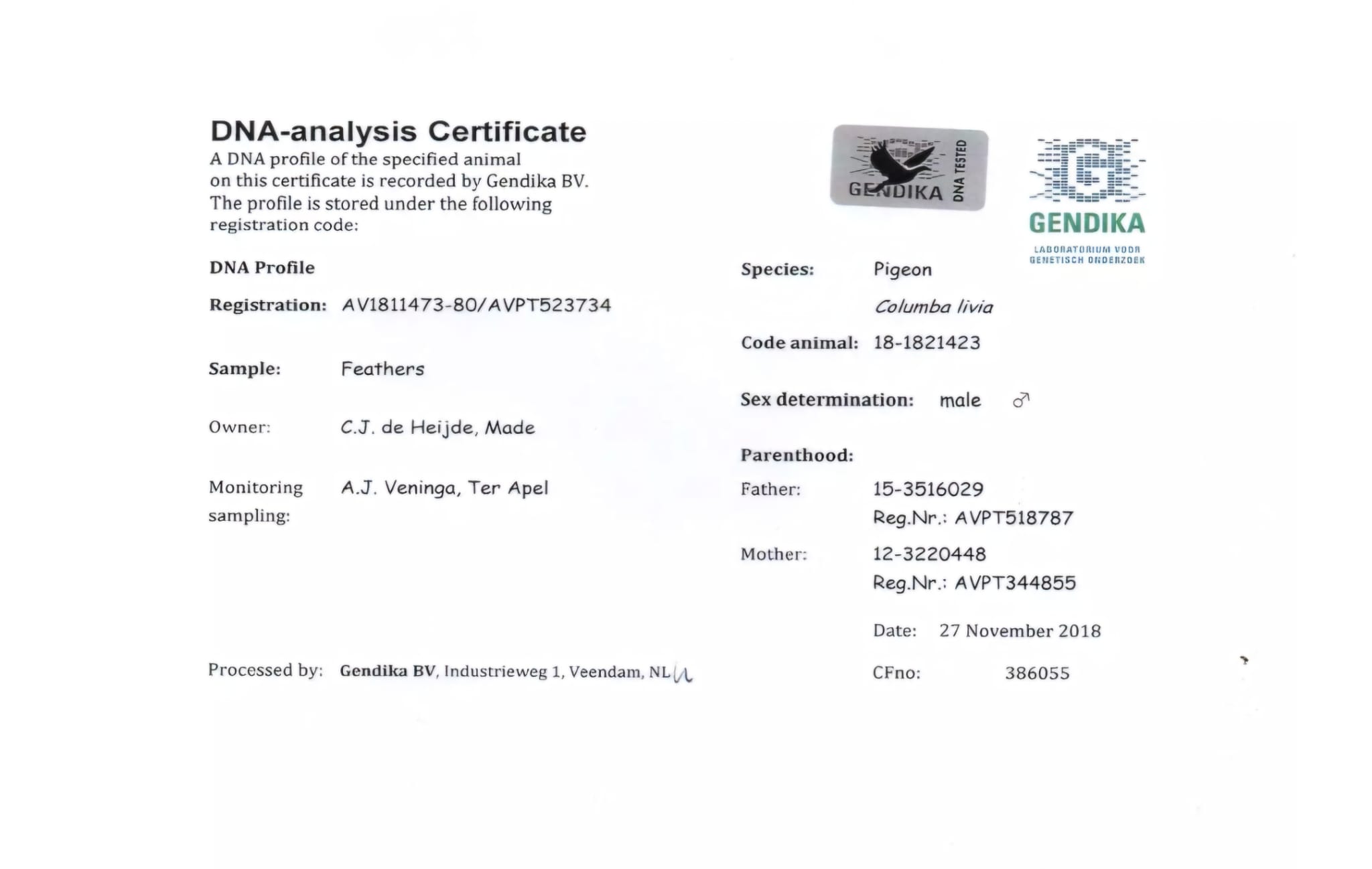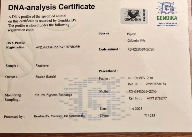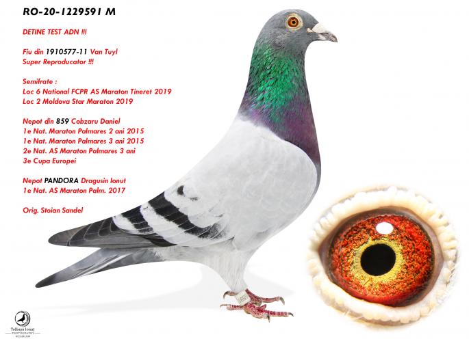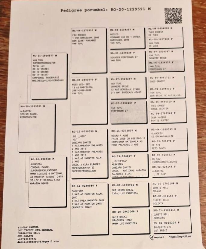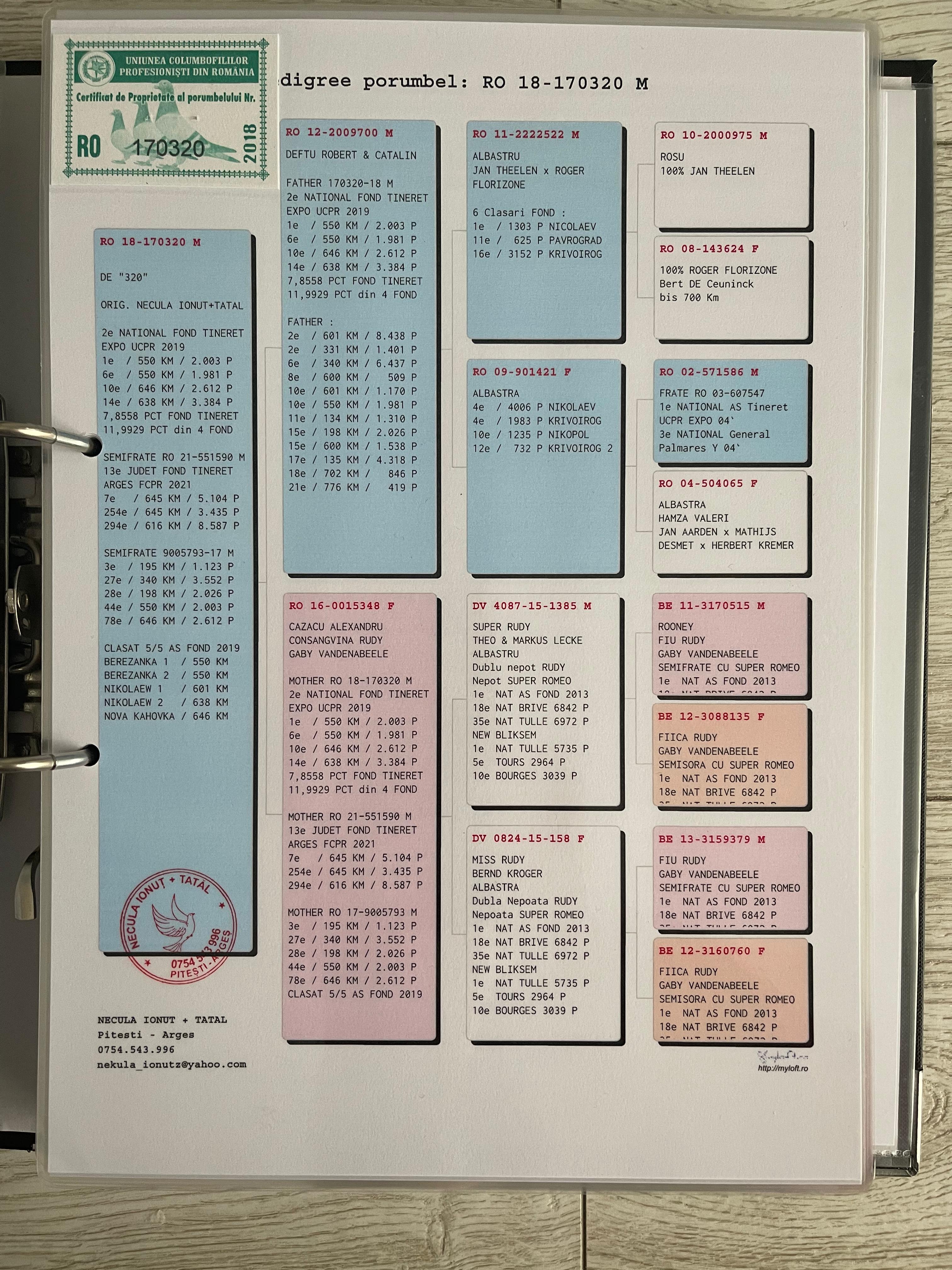Fiu Tuylu = super reproducator, descendentii acestuia au obtinut rezultate de top 3 national. Porumbel insotit de test ADN nevandut |