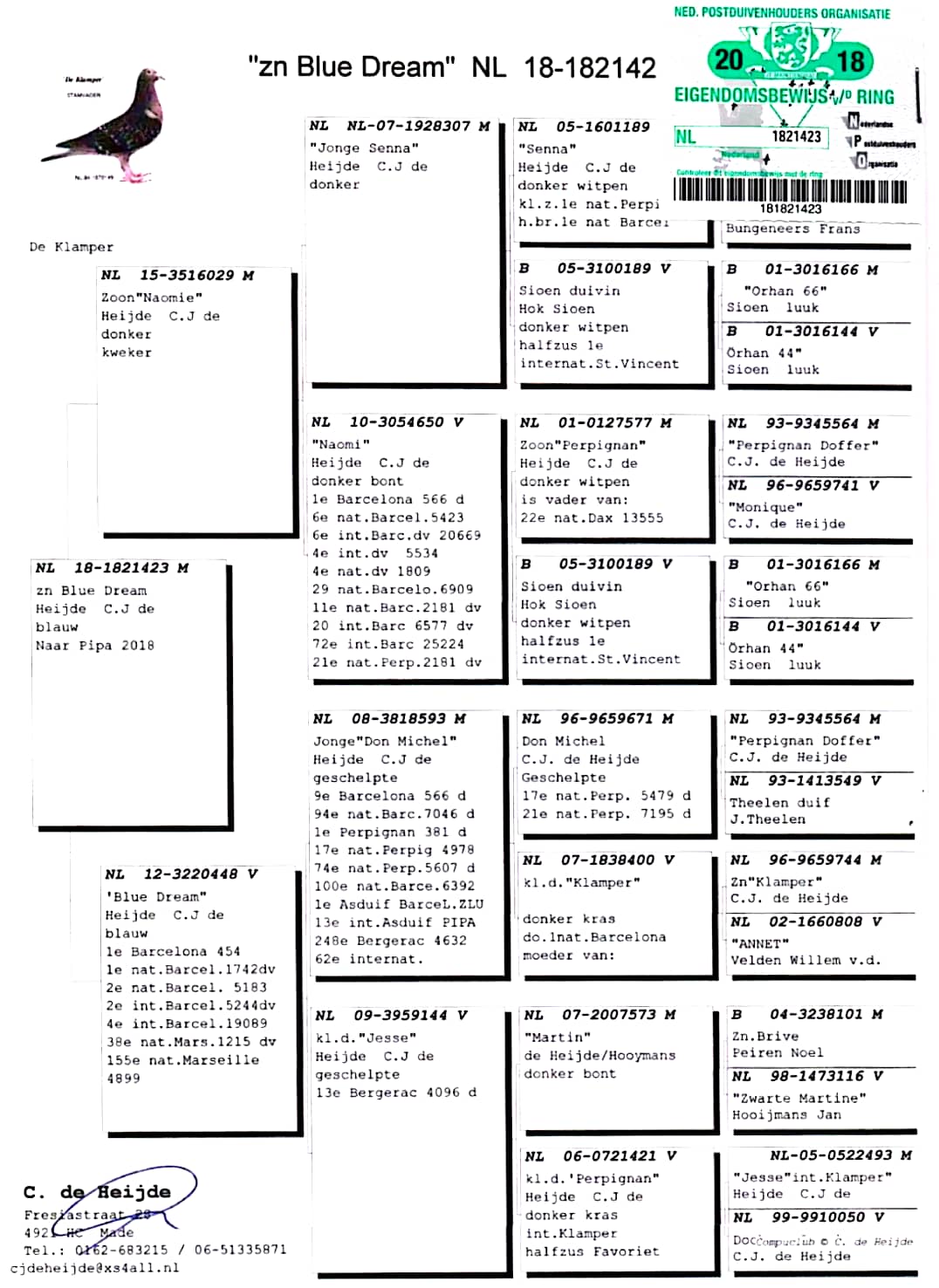 Oportunitate rara Fiu direct din "Blue Dream" DETINE TEST ADN " Blue Dream " 1e Barcelona 454 d 1e Barcelona 1742 dv 2e nat . Barcelona 5183 d .2015 2e Barcelona Internat. 5244 dv 4e Barcelona Internat. 19089 dv