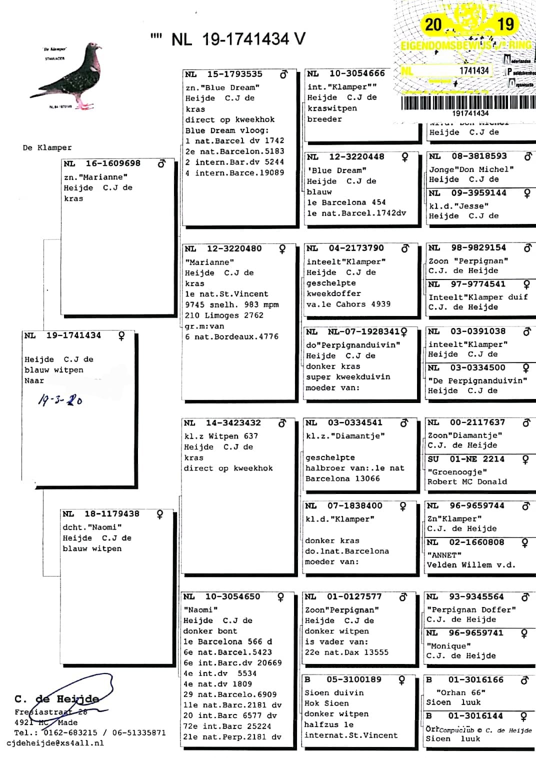 Nepot de " Naomi" 1e Barcelona 566 d 6e nat.Barcel.5423 6e int.Barc.dv 20669 4e int.dv 5534 4e nat.dv 1809 nevandut |